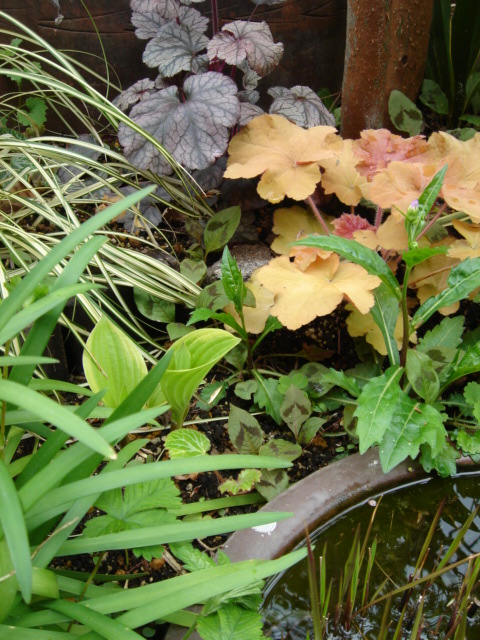 今年植えた、ヒューケラ(ツボサンゴ)の『キャラメル』がとてもいい色・・・花が無いのに華やかです。