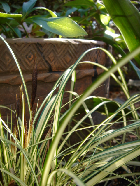 カレックス 『エバーゴールド』 斑入りのカラーリーフです。冬のこの時期にも葉はそのまま。