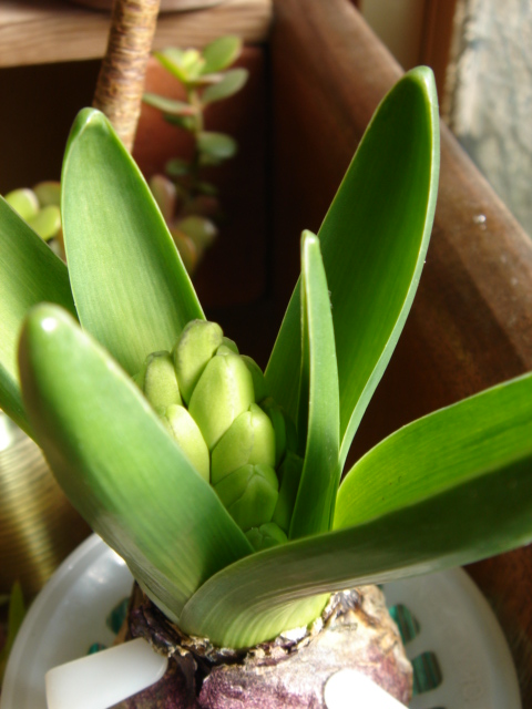 ←そしてこれは、室内で水栽培中のヒヤシンス。