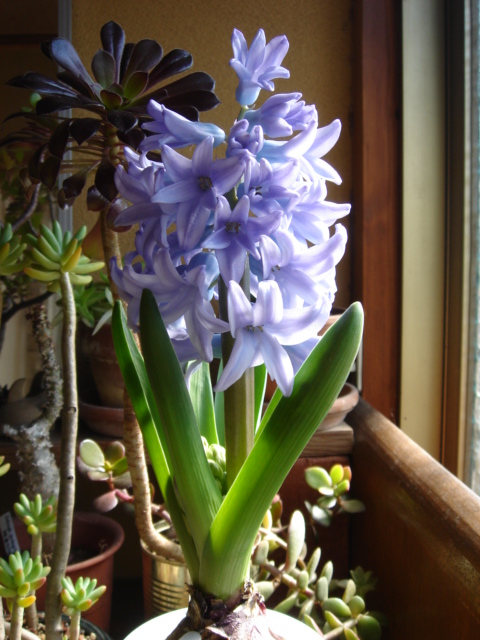 →こちら、ヒヤシンスがどんどん咲き進んでいっています。ブルーがかった紫・・・とてもキレイだ・・・