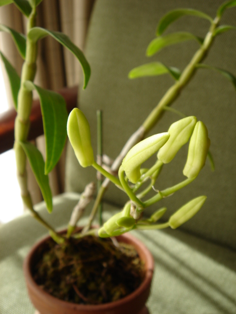 デンドロビウムとは、ギリシャ語で、「樹木に着生生活をする」という意味なんだそうです。(今、知りました)