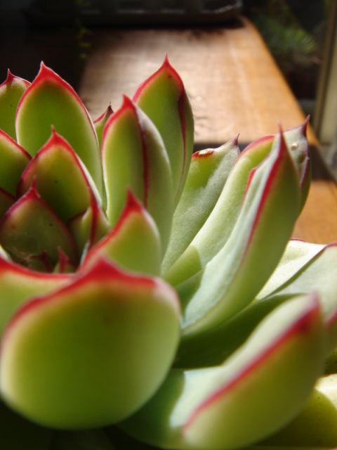 この肉厚の葉を一枚もぎとって、土の上にのせておくだけで、増えます。。。(゜-゜;)ウーン、宇宙的。